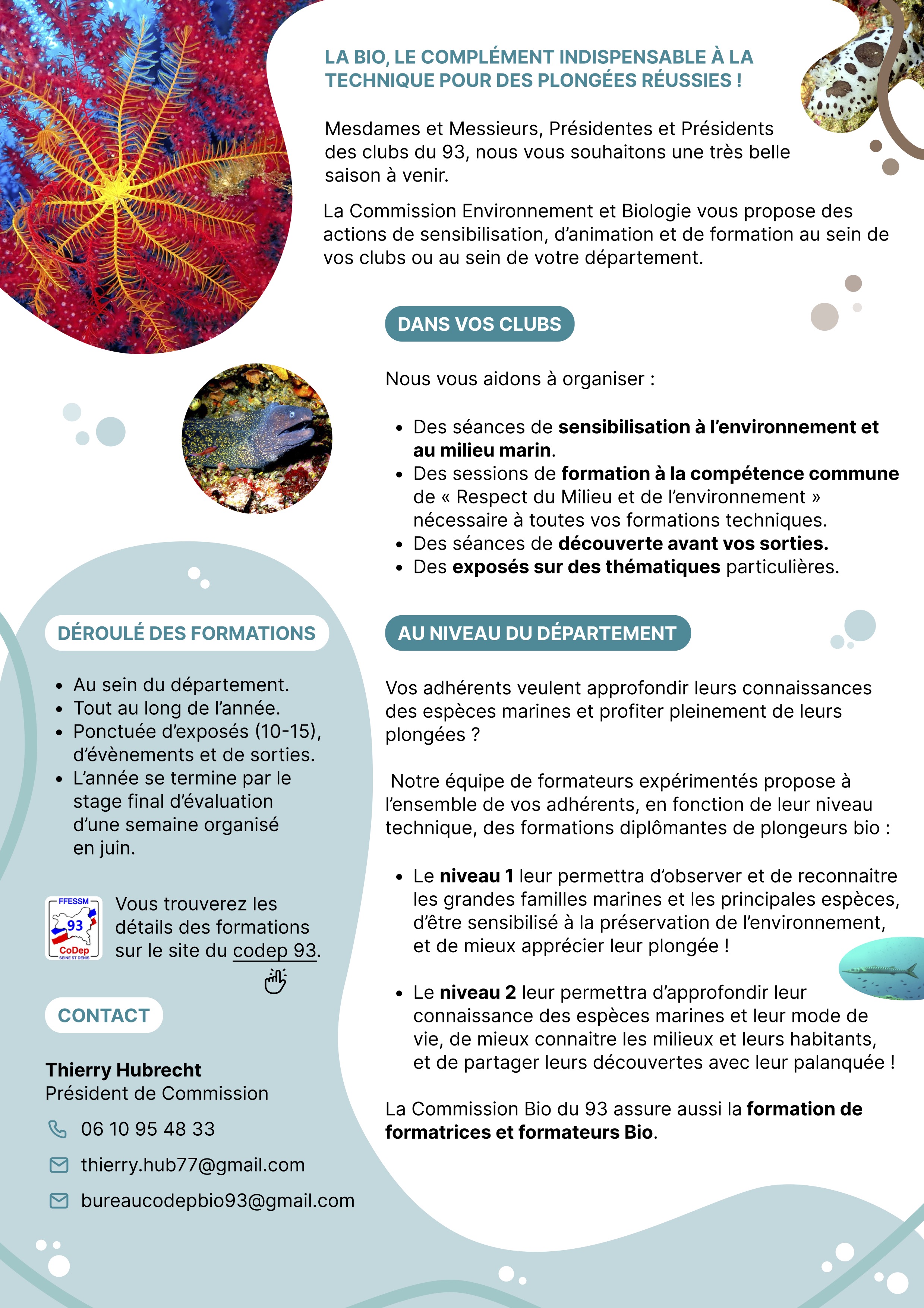 La Commission Environnement et Biologie vous propose des actions de sensibilisation, d’animation et de formation au sein de vos clubs ou au sein de votre département.